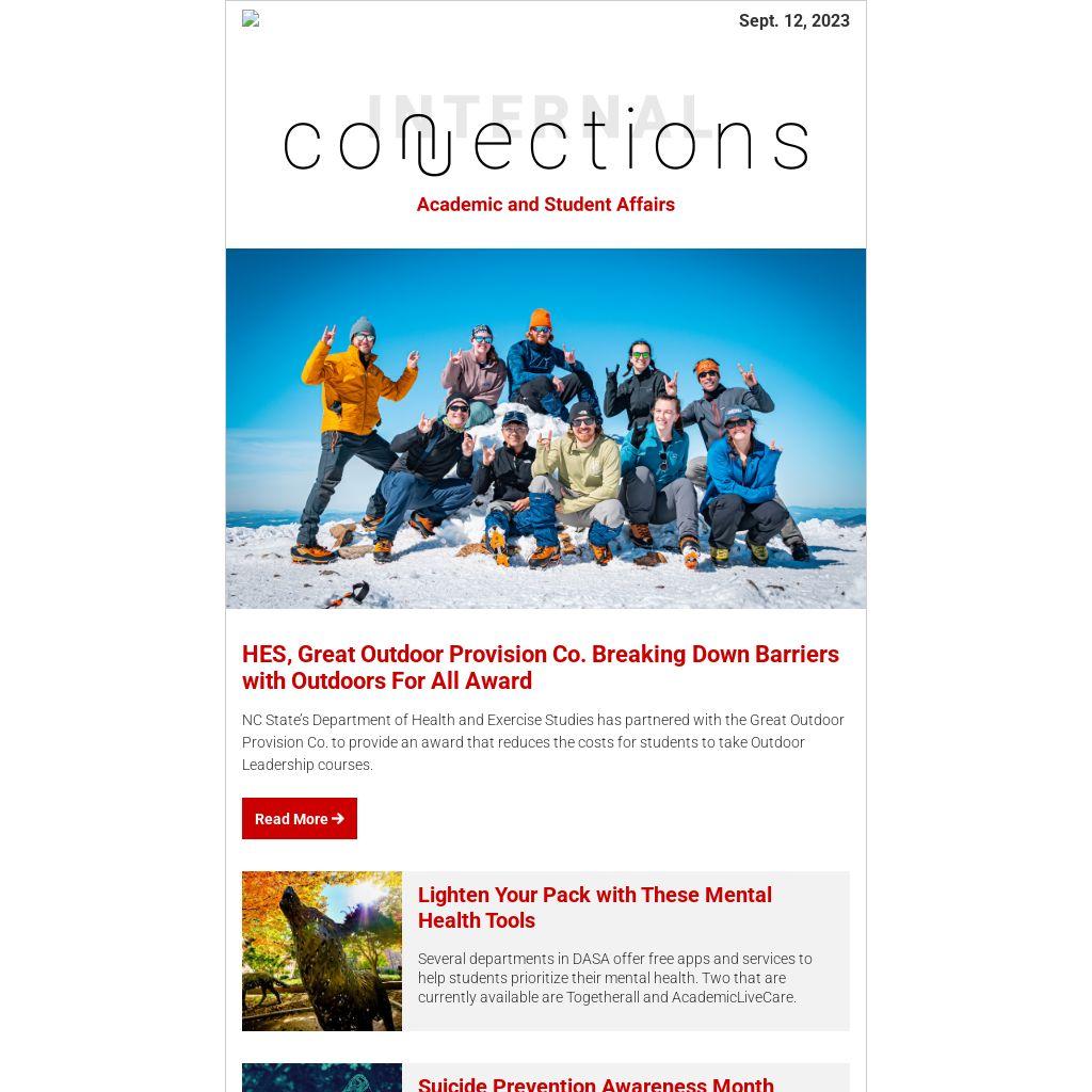 - Please remind your students that Tuesday, Sept. 19 is a Wellness Day at NC State! A list of events planned for the day can be found here.