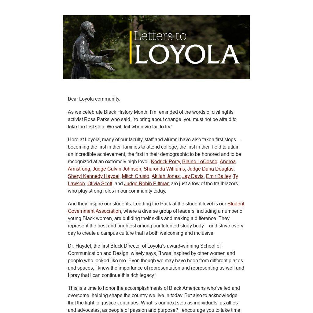 Dear Loyola community,