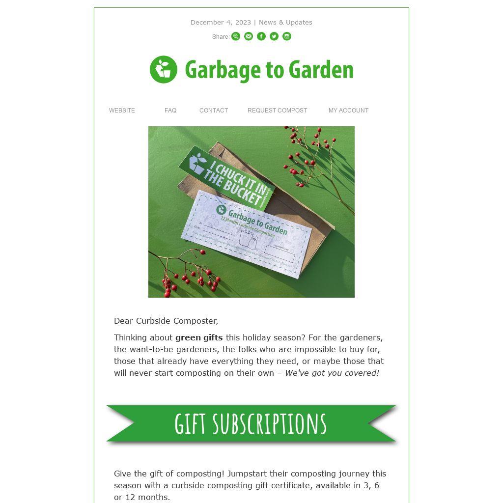Thinking about green gifts this holiday season? For the gardeners, the want-to-be gardeners, the folks who are impossible to buy for, those that already have everything they need, or maybe those that will never start composting on their own – We've got you covered!