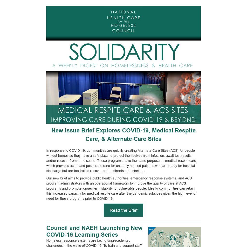 New Issue Brief Explores COVID-19, Medical Respite Care, & Alternate Care Sites