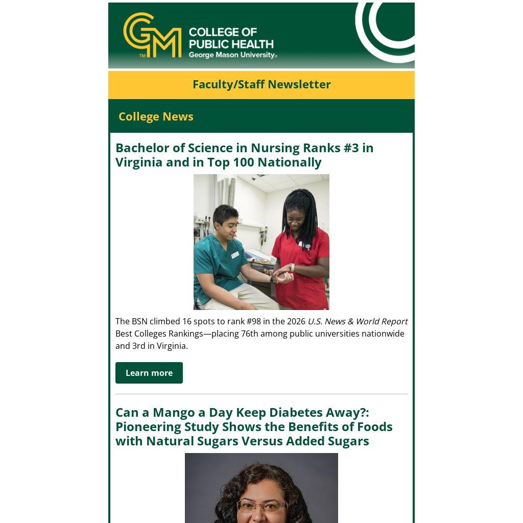 The BSN climbed 16 spots to rank #98 in the 2026 U.S. News & World Report Best Colleges Rankings—placing 76th among public universities nationwide and 3rd in Virginia.