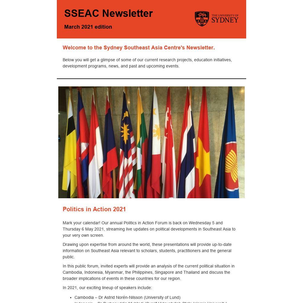 Welcome to the Sydney Southeast Asia Centre's Newsletter.