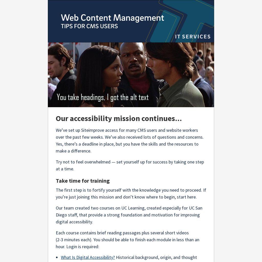 It’s a thrill to see your Siteimprove score rise into the green zone. But we shouldn’t be overly obsessed with hitting specific numbers. Remember, we’re performing an important service by removing barriers and making things easier for folks! The ultimate goal is online content that is easily accessible to all visitors.