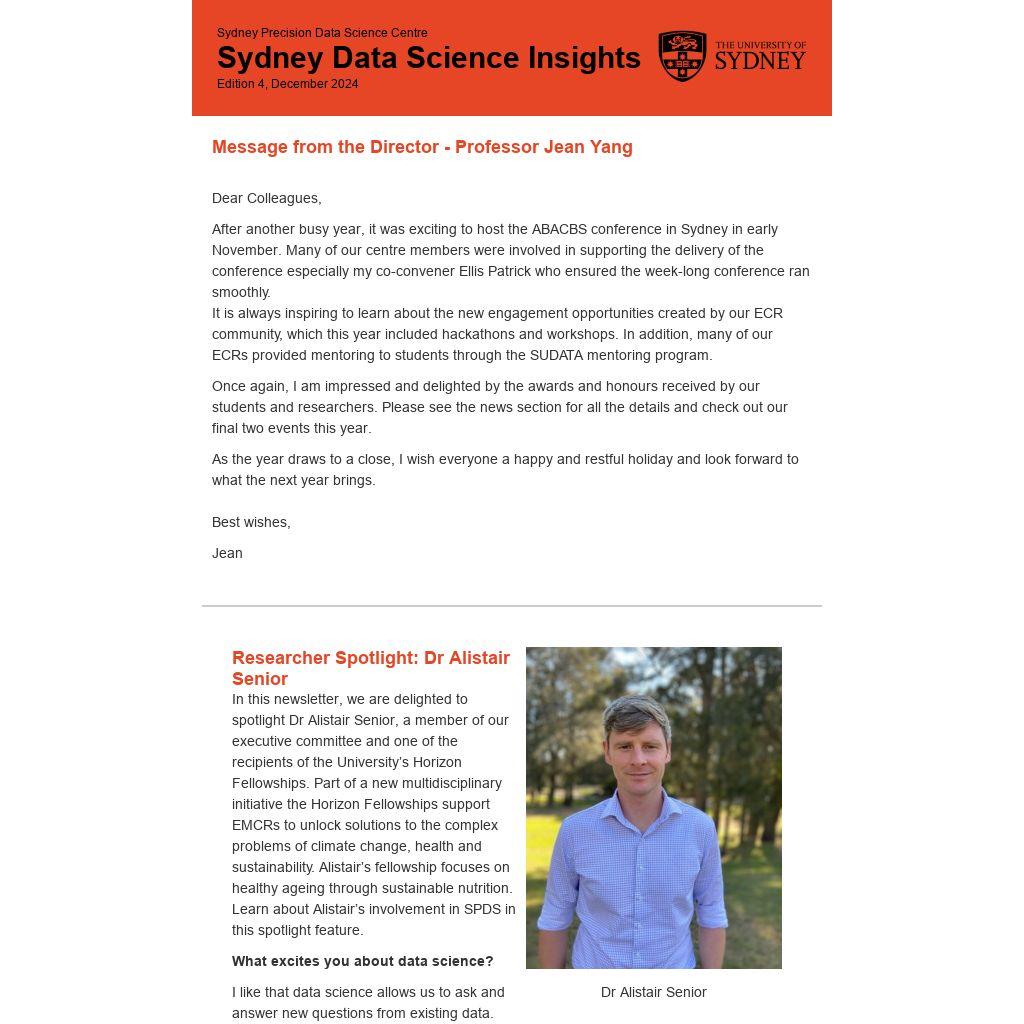 After another busy year, it was exciting to host the ABACBS conference in Sydney in early November. Many of our centre members were involved in supporting the delivery of the conference especially my co-convener Ellis Patrick who ensured the week-long conference ran smoothly.