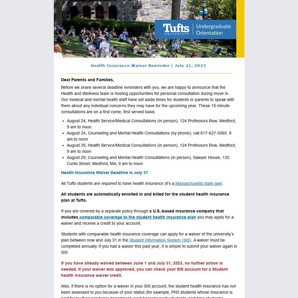 Questions? Please reach out to StudentHealthInsurance@tufts.edu.