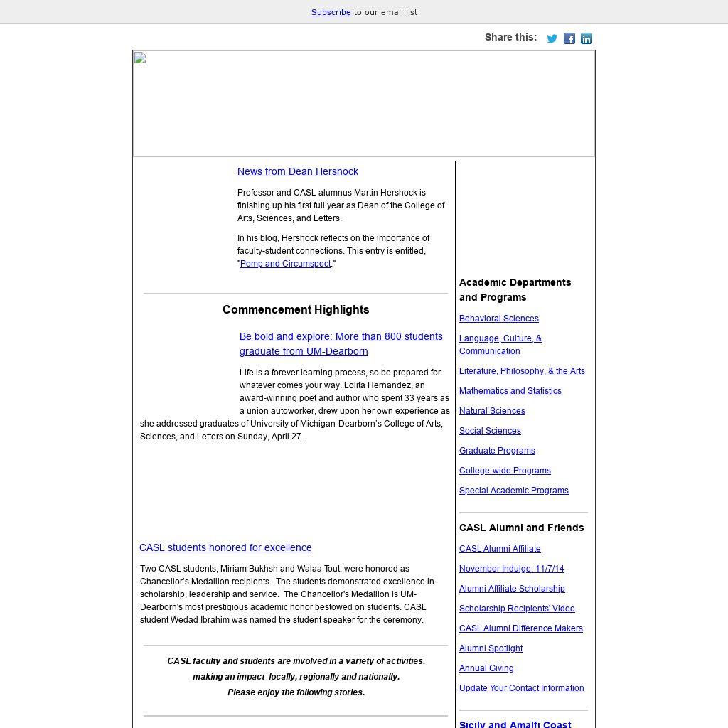 | "A View from the CASL" is a quarterly e-newsletter for CASL alumni.