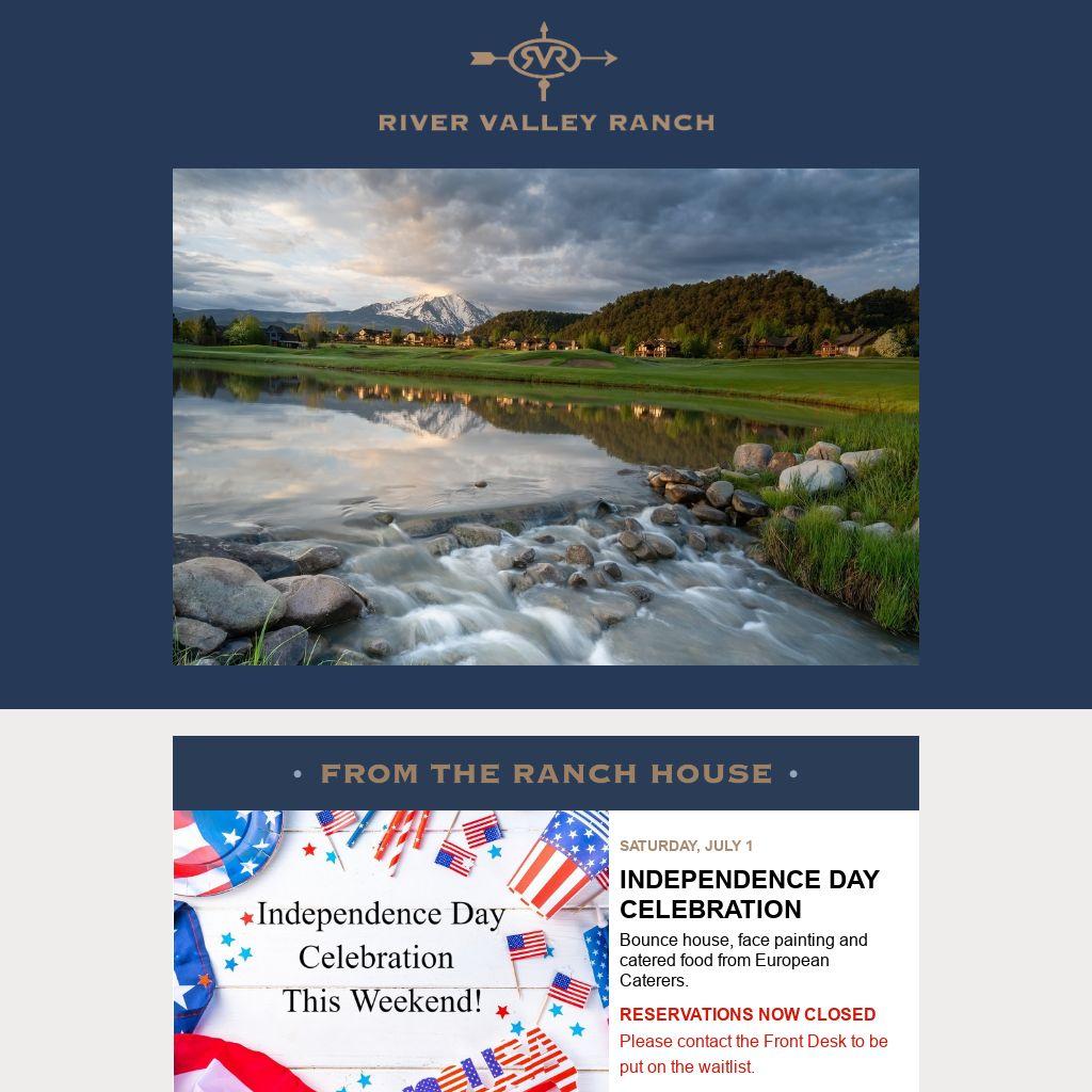 Ranch House CLOSED 1- 4 p.m. on Saturday, July 1 to set up for the Independence Day Celebration. Doors will open again at 4 p.m. to those registered for the event.