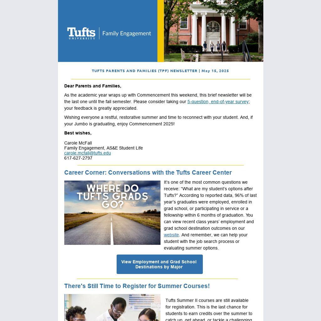 TUFTS PARENTS AND FAMILIES (TPF) NEWSLETTER | May 15, 2025