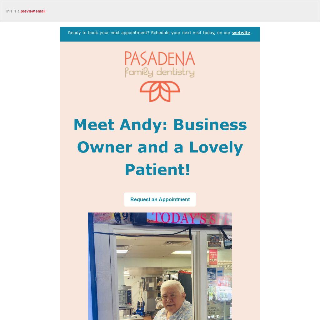 Supporting our communities is an incredibly important value we hold dearly at Pasadena Family Dentistry. As a small business owner in Pasadena, just like us, our staff loves to visit Andy weekly for lunch.