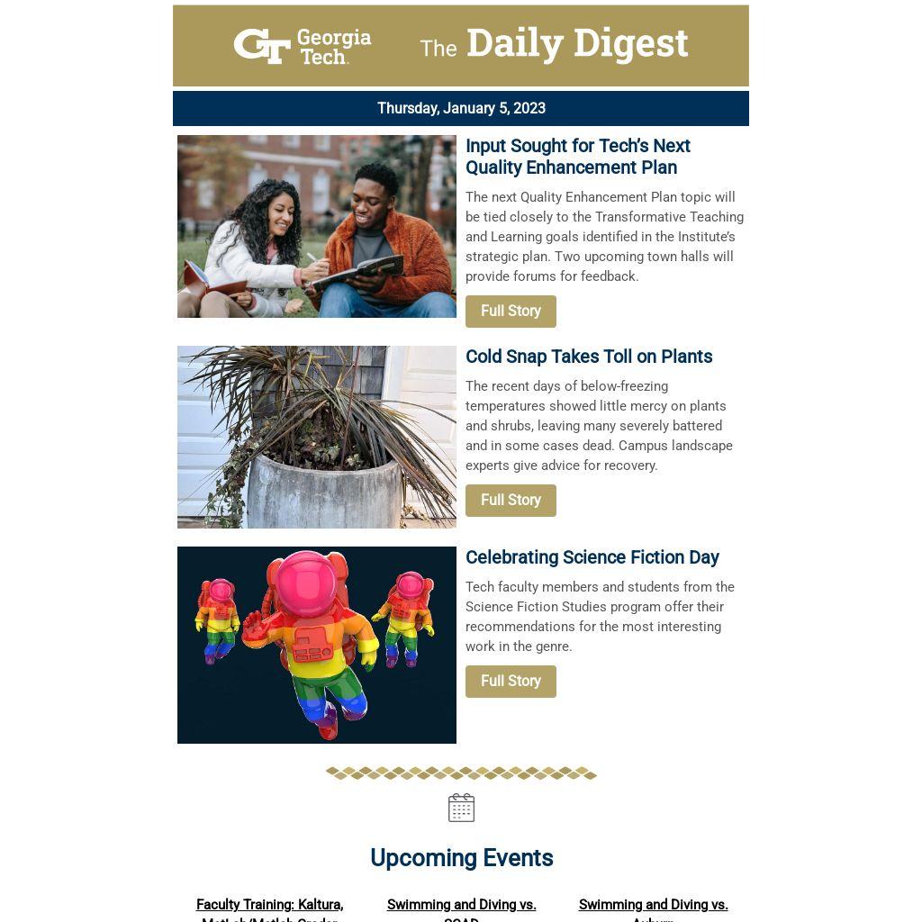 | The next Quality Enhancement Plan topic will be tied closely to the Transformative Teaching and Learning goals identified in the Institute’s strategic plan. Two upcoming town halls will provide forums for feedback.