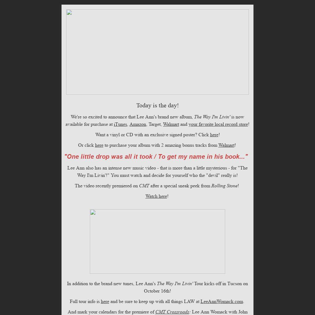 Lee Ann also has an intense new music video - that is more than a little mysterious - for "The Way I'm Livin'!" You must watch and decide for yourself who the "devil" really is!