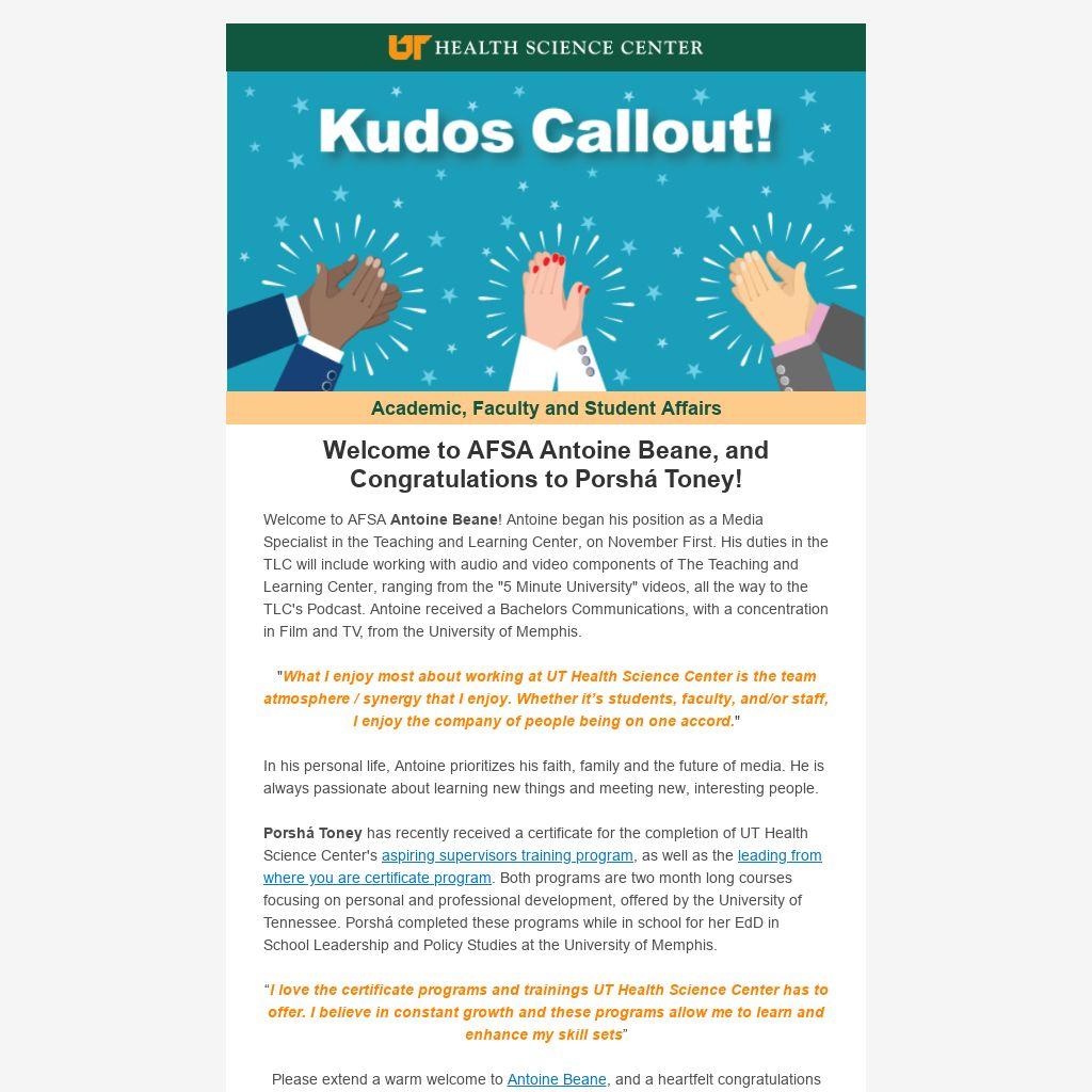 Porshá Toney has recently received a certificate for the completion of UT Health Science Center's aspiring supervisors training program, as well as the leading from where you are certificate program. Both programs are two month long courses focusing on personal and professional development, offered by the University of Tennessee. Porshá completed these programs while in school for her EdD in School Leadership and Policy Studies at the University of Memphis.