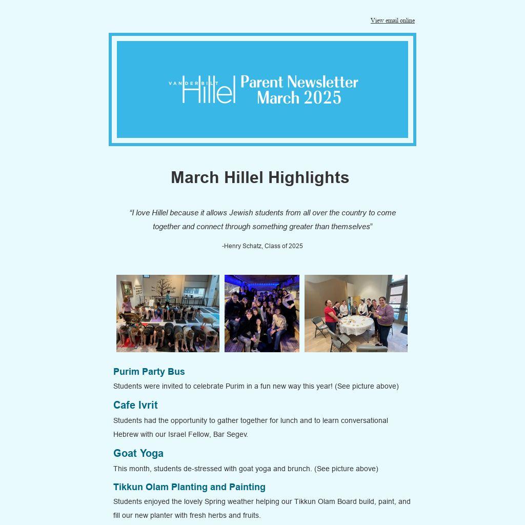 Students enjoyed 2 themed Shabbats this month with "Jewnity Shabbat" (a collaboration with Chabad and Vanderbilt Hillel) and "Broadway Shabbat."