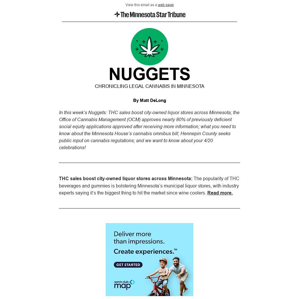 In this week’s Nuggets: THC sales boost city-owned liquor stores across Minnesota; the Office of Cannabis Management (OCM) approves nearly 80% of previously deficient social equity applications approved after receiving more information; what you need to know about the Minnesota House’s cannabis omnibus bill; Hennepin County seeks public input on cannabis regulations; and we want to know about your 4/20 celebrations!