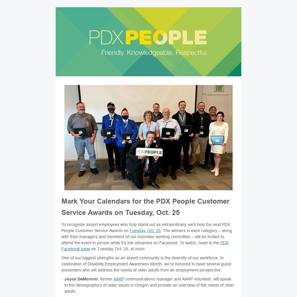 Mark Your Calendars for the PDX People Customer Service Awards on Tuesday, Oct. 25