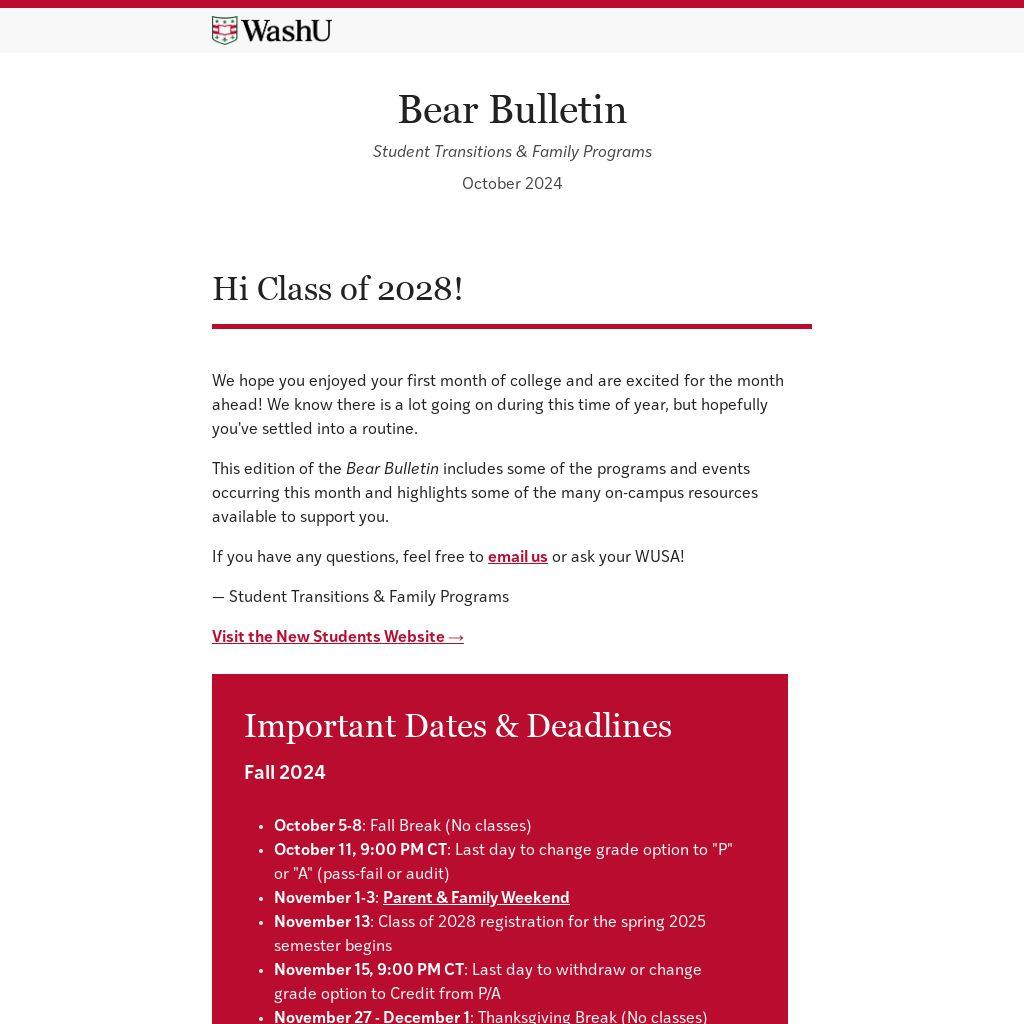 This edition of the Bear Bulletin includes some of the programs and events occurring this month and highlights some of the many on-campus resources available to support you.