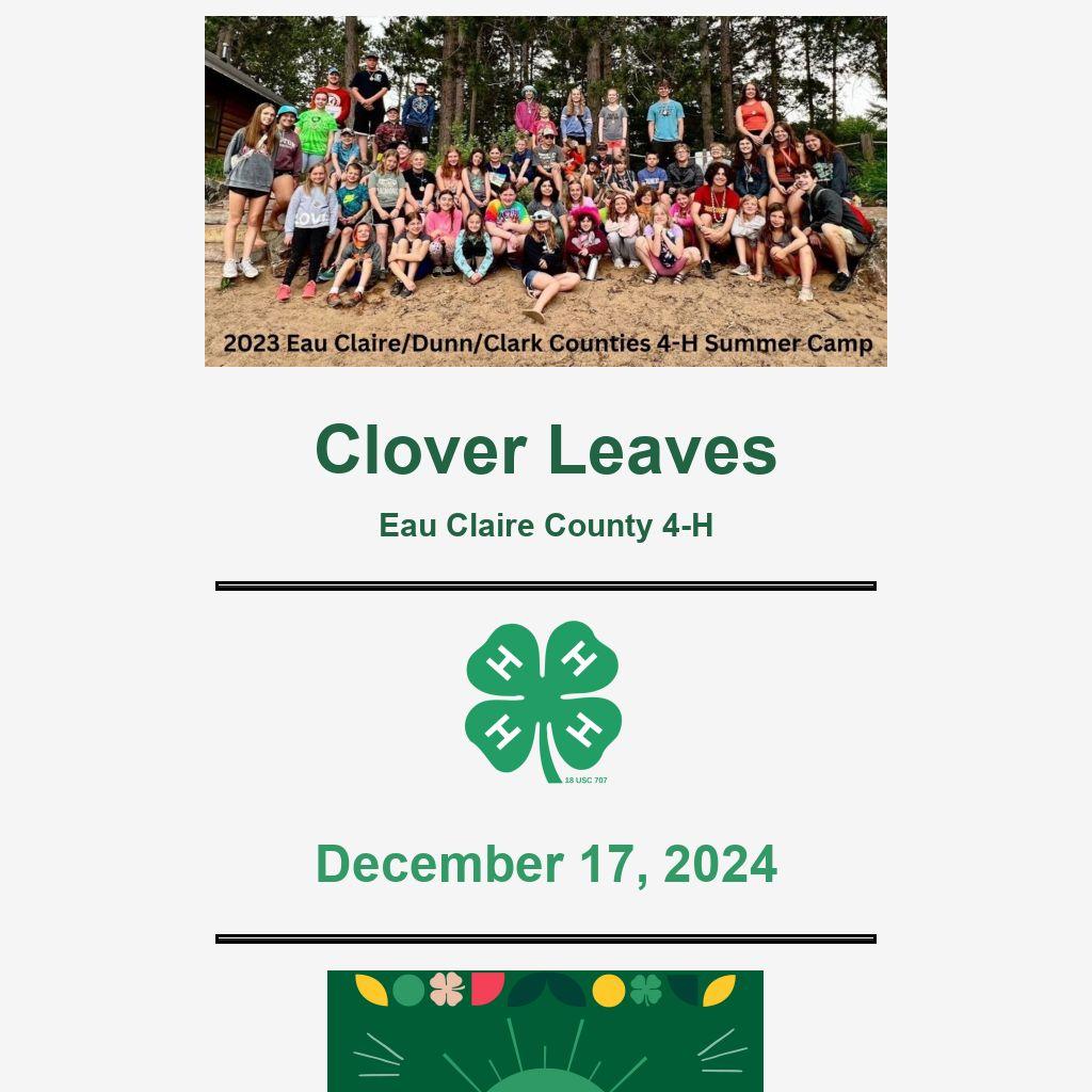 Leaders Association Meetings are held at the Eau Claire County Extension Office the 2nd Tuesday of September, November, January, March, May, and June. 6:00 will be a time to hear policy updates, ask the 4-H Educator questions, and brainstorm club ideas. Meetings will start at 6:30pm. PLEASE make every effort to send a representative to these meetings. Attending is how we make connections and learn from each other to bring the best program we can to the young people in our clubs. It connects your local club program to the wider county program and makes you aware of the wider opportunities in 4-H so that you can promote those to your club members.