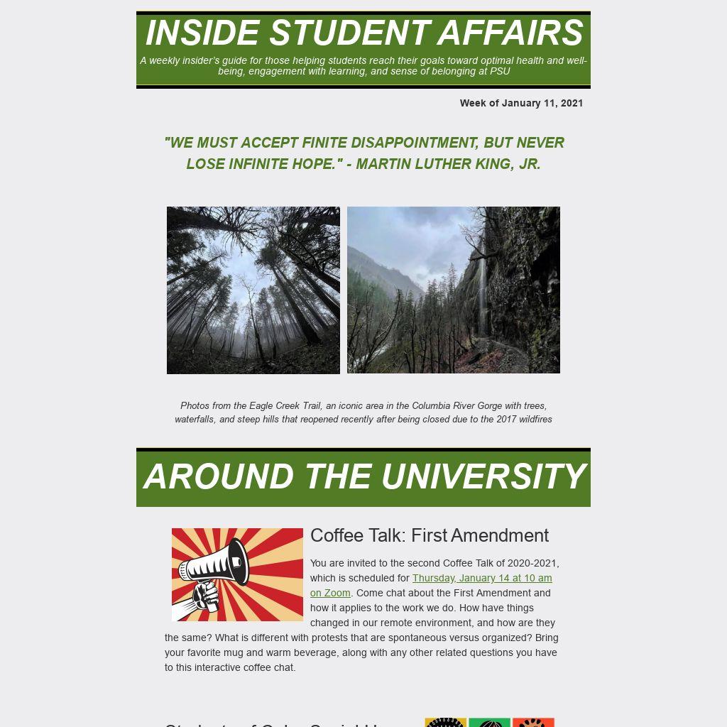 SUGGESTION FOR A FUTURE EDITION?If you want to include something in an upcoming Inside Student Affairs, please email studentaffairs@pdx.edu. Archives of past issues can be found here.