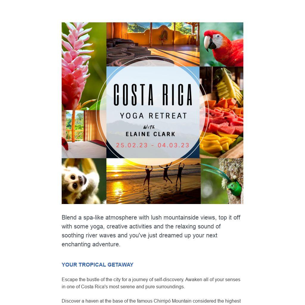 - Three delicious meals per day starting with breakfast on the Sunday and ending with a delicious brunch on the following Friday. Including unlimited tea, complimentary fresh juices and Costa Rican coffee at breakfast. A smaller pre-breakfast is also available before class!