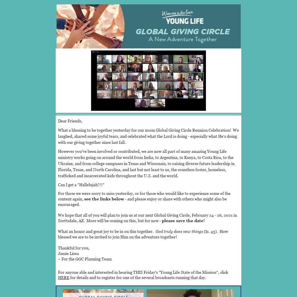 What a blessing to be together yesterday for our zoom Global Giving Circle Reunion Celebration! We laughed, shared some joyful tears, and celebrated what the Lord is doing - especially what He's doing with our giving together since last fall.
