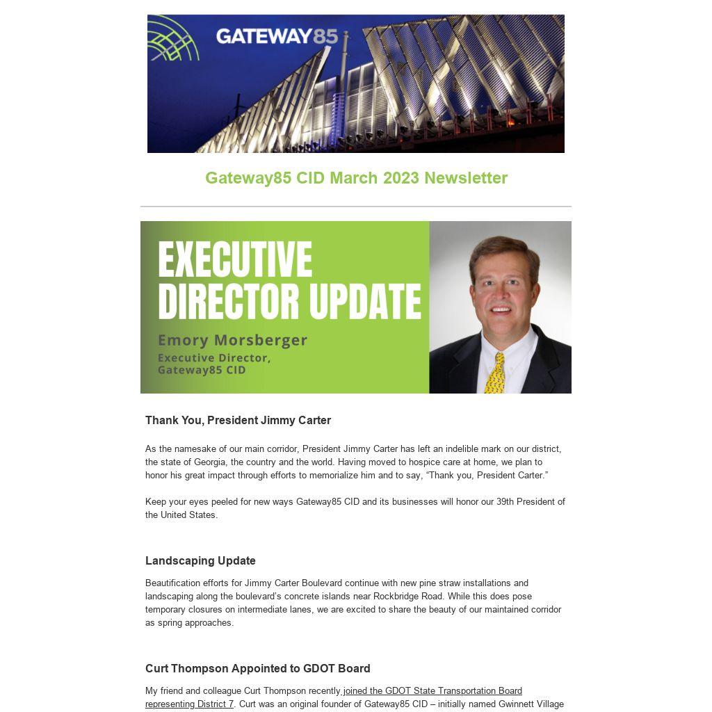 My friend and colleague Curt Thompson recently joined the GDOT State Transportation Board representing District 7. Curt was an original founder of Gateway85 CID – initially named Gwinnett Village CID – and was previously a Georgia State Senator.