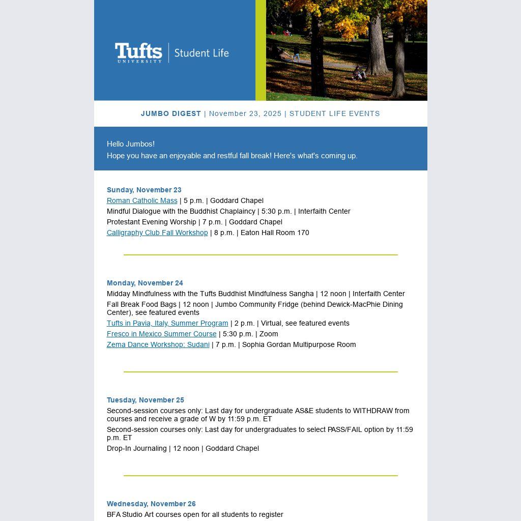 JUMBO DIGEST | November 23, 2025 | STUDENT LIFE EVENTS | |