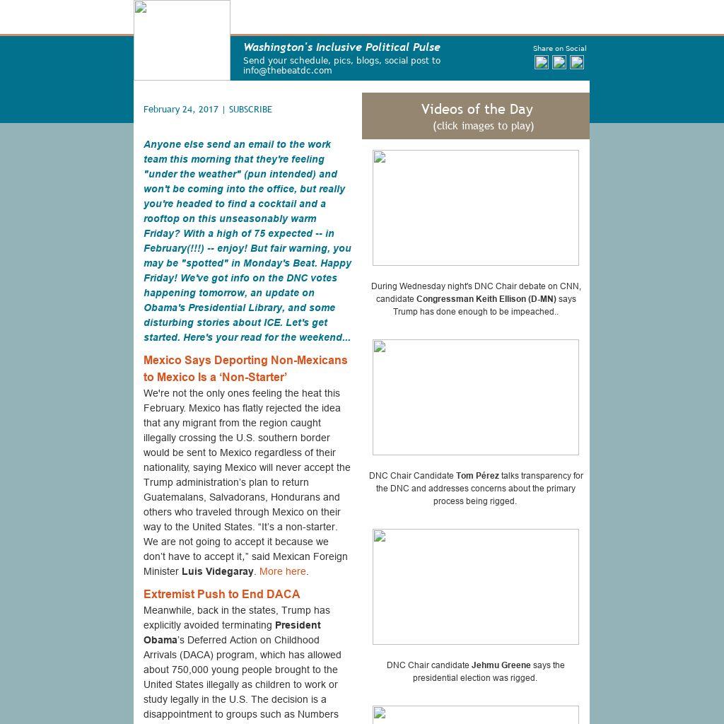 Anyone else send an email to the work team this morning that they're feeling "under the weather" (pun intended) and won't be coming into the office, but really you're headed to find a cocktail and a rooftop on this unseasonably warm Friday? With a high of 75 expected -- in February(!!!) -- enjoy! But fair warning, you may be "spotted" in Monday's Beat. Happy Friday! We've got info on the DNC votes happening tomorrow, an update on Obama's Presidential Library, and some disturbing stories about ICE. Let's get started. Here's your read for the weekend...