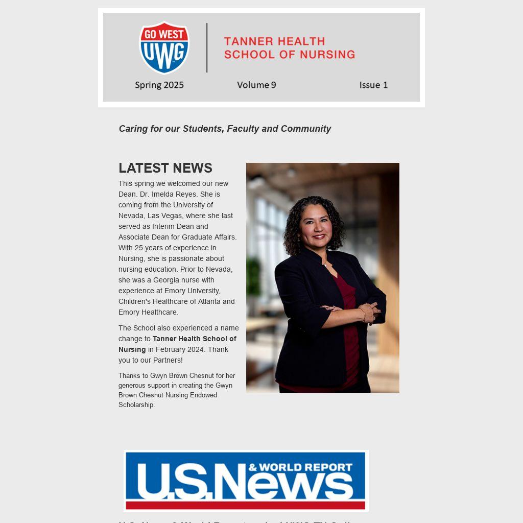 - Dr. Susie Jonassen, BSN Director & Assistant Professor, UWG TH School of Nursing, published in Nursing Education Perspectives: “Transition From Baccalaureate-Prepared Bedside Nurse to Adjunct Clinical Faculty.”