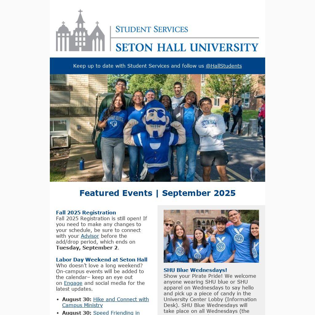 Save the Date: We are thrilled to invite you to the rebranded Hall Homecoming and Family Weekend, taking the place of Seton Hall Weekend. Hall Homecoming and Family Weekend will be held October 3-5, 2025.