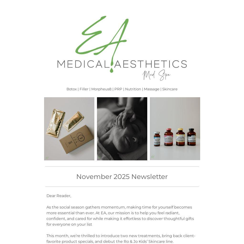 Stay in touch with us all month long! We invite you to follow EA on social media. You'll gain access to the latest updates, learn more about our exclusive skincare line, and see content shared by our amazing estheticians as they provide skincare tips based on their many years of experience. Be the first to know about upcoming events, promotions, and new treatment offerings. Follow us today and elevate your skincare routine to the next level! Use the icons below to find our official social accounts or to support the Why Me Foundation.