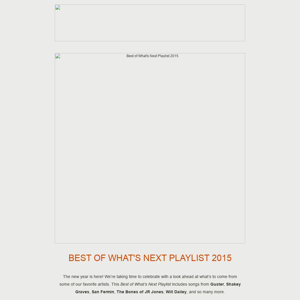 The new year is here! We’re taking time to celebrate with a look ahead at what’s to come from some of our favorite artists. This Best of What’s Next Playlist includes songs from Guster, Shakey Graves, San Fermin, The Bones of JR Jones, Will Dailey, and so many more.
