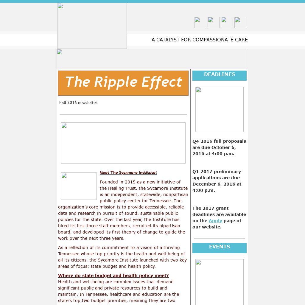 Founded in 2015 as a new initiative of the Healing Trust, the Sycamore Institute is an independent, statewide, nonpartisan public policy center for Tennessee. The organization’s core mission is to provide accessible, reliable data and research in pursuit of sound, sustainable public policies for the state. Over the last year, the Institute has hired its first three staff members, recruited its bipartisan board, and developed its first theory of change to guide the work over the next three years.