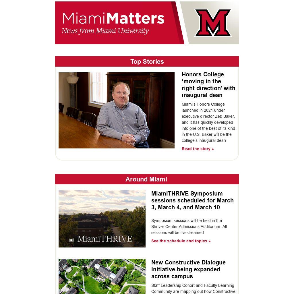 Zeb Baker named inaugural dean of Honors College; MiamiTHRIVE symposiums,