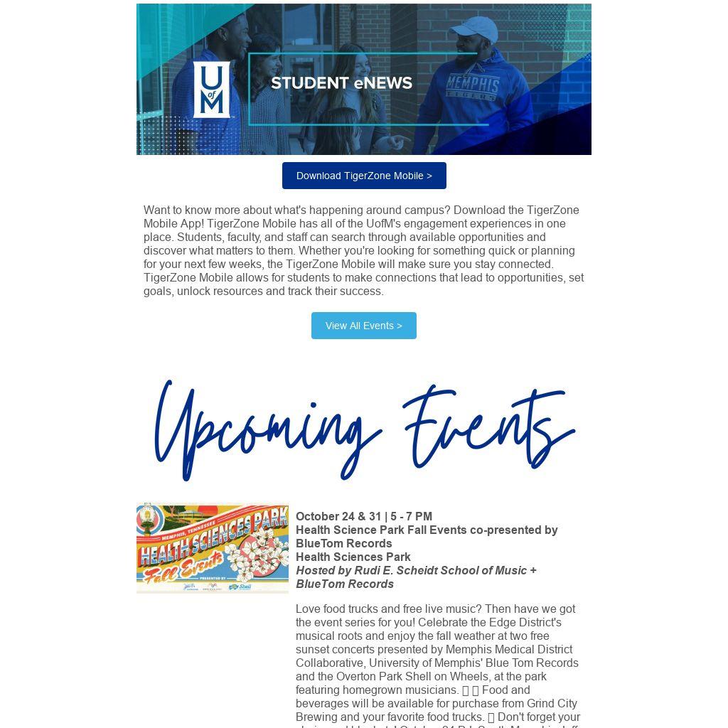 Want to know more about what's happening around campus? Download the TigerZone Mobile App! TigerZone Mobile has all of the UofM's engagement experiences in one place. Students, faculty, and staff can search through availableĀ opportunities and discover what matters to them. Whether you're looking for something quick or planning for your next few weeks, the TigerZone Mobile will make sure you stay connected. TigerZone Mobile allows for students to make connections that lead to opportunities, set goals, unlock resources and track their success.Ā