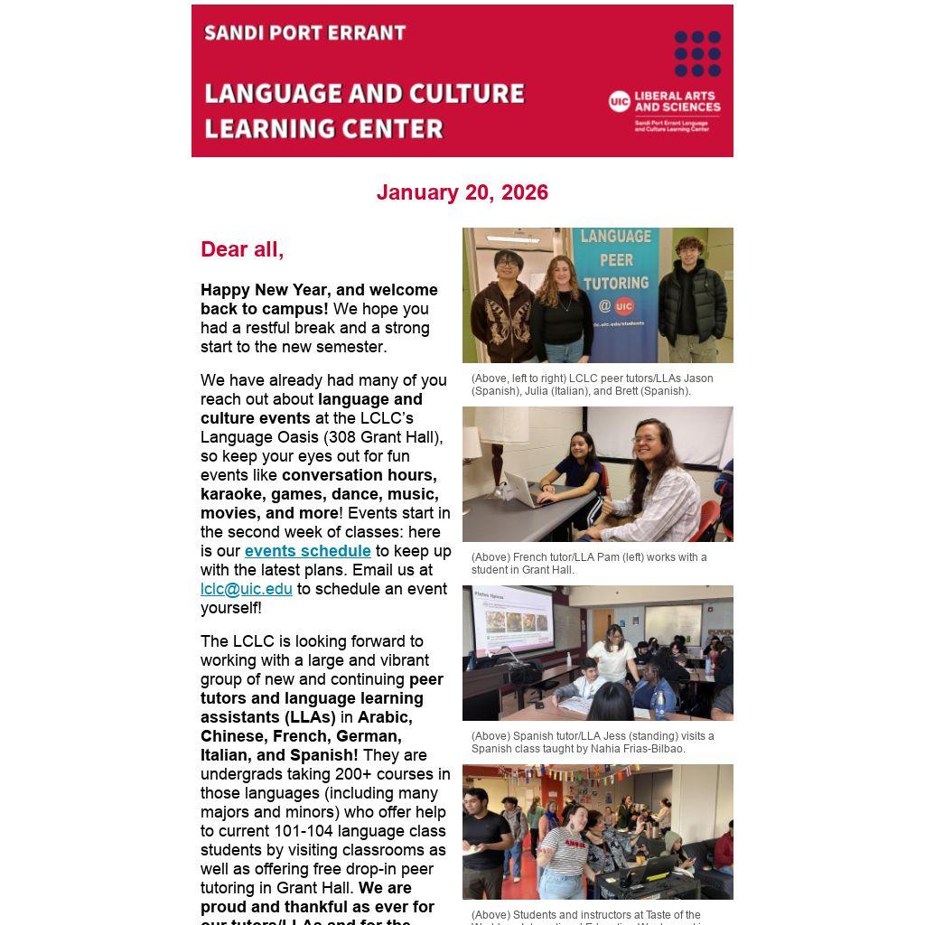 We have already had many of you reach out about language and culture events at the LCLC’s Language Oasis (308 Grant Hall), so keep your eyes out for fun events like conversation hours, karaoke, games, dance, music, movies, and more! Events start in the second week of classes: here is our events schedule to keep up with the latest plans. Email us at lclc@uic.edu to schedule an event yourself!