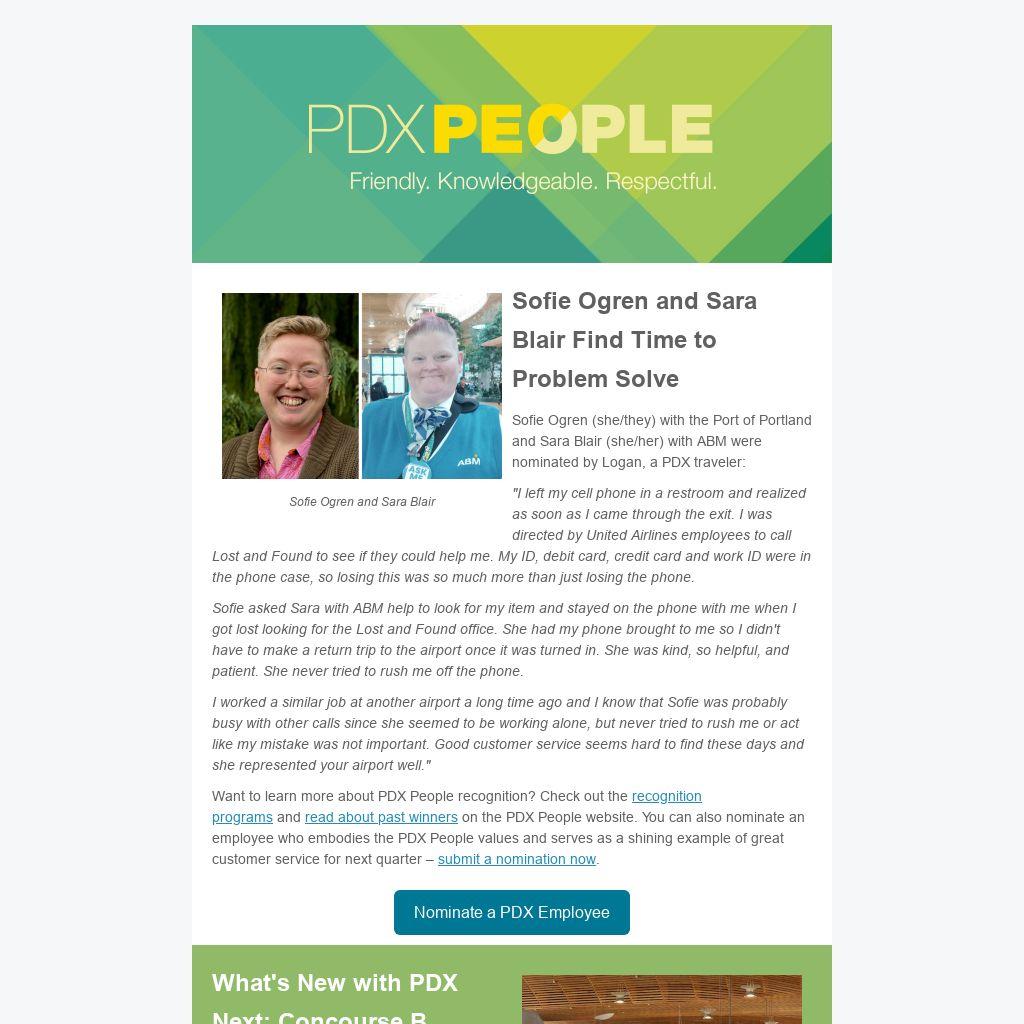January Forum: Mark your calendar for Tuesday, Jan. 28, to get the inside scoop on Phase 2 of construction at PDX. The Port of Portland's Jen Guild along with Joe Brower of Hoffman-Skanska will share the latest construction updates and answer your questions about PDX Next in just 30 minutes. If you'd like to join this meeting, email PDX People Communications before the end of the day on Monday, Jan. 27, for the meeting link.