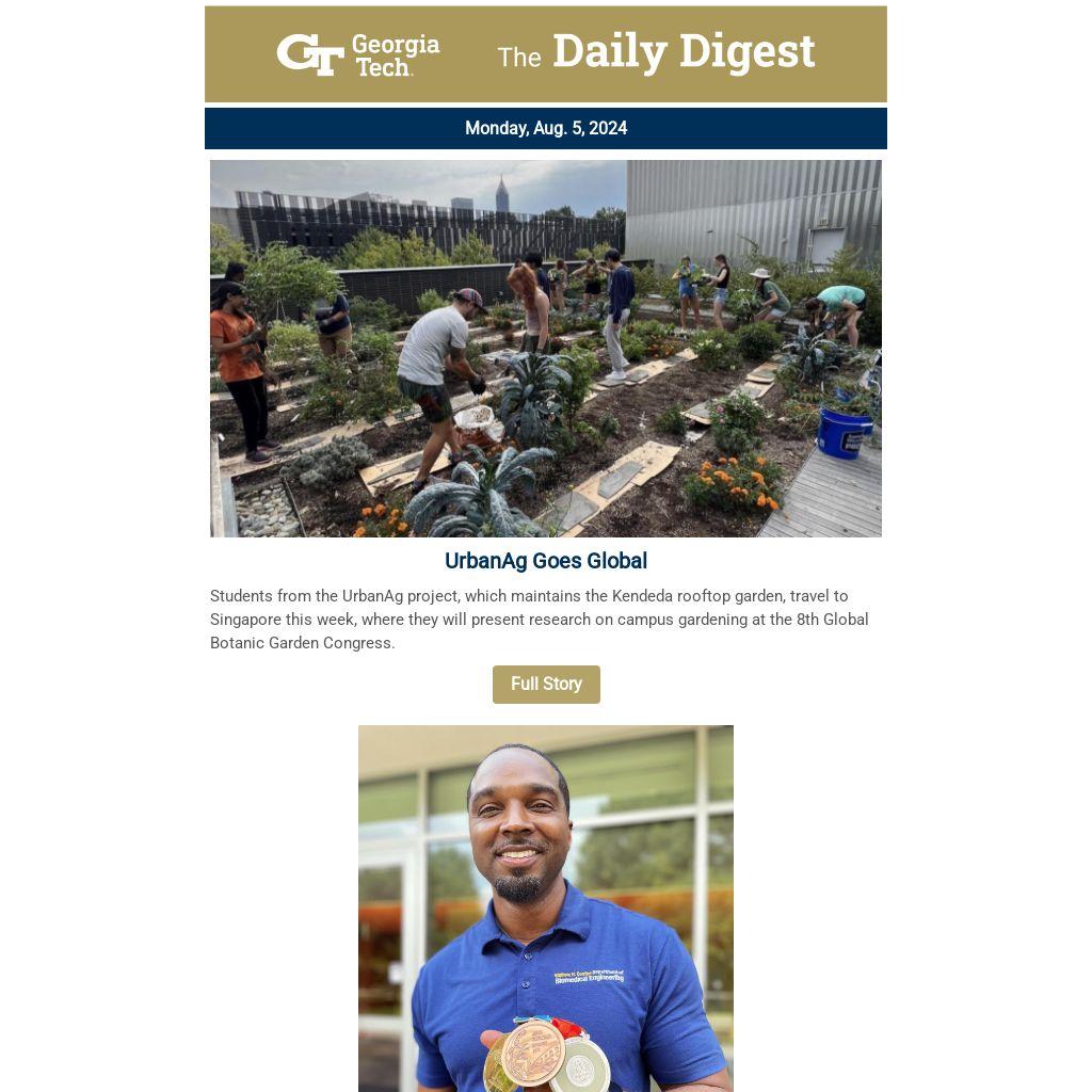 Students from the UrbanAg project, which maintains the Kendeda rooftop garden, travel to Singapore this week, where they will present research on campus gardening at the 8th Global Botanic Garden Congress.
