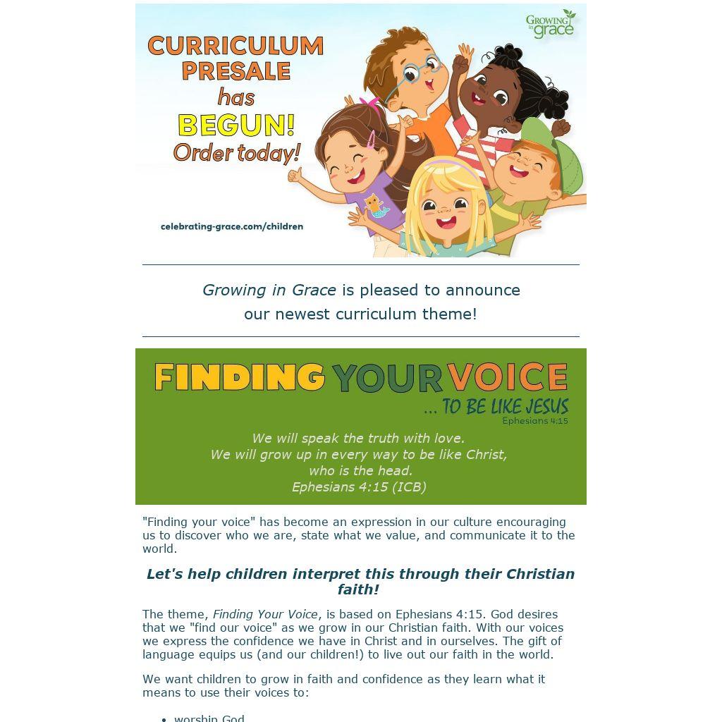 The theme, Finding Your Voice, is based on Ephesians 4:15. God desires that we "find our voice" as we grow in our Christian faith. With our voices we express the confidence we have in Christ and in ourselves. The gift of language equips us (and our children!) to live out our faith in the world.