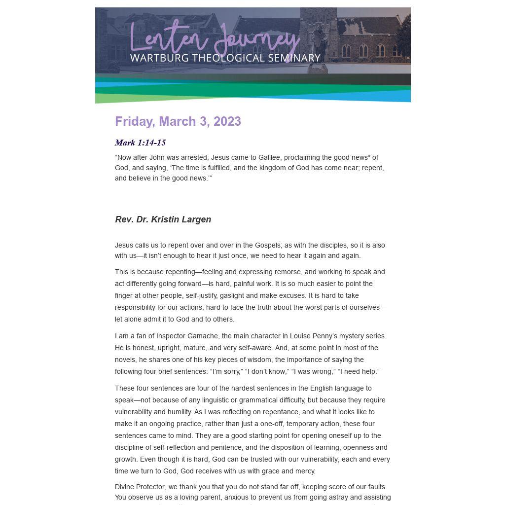These four sentences are four of the hardest sentences in the English language to speak—not because of any linguistic or grammatical difficulty, but because they require vulnerability and humility. As I was reflecting on repentance, and what it looks like to make it an ongoing practice, rather than just a one-off, temporary action, these four sentences came to mind. They are a good starting point for opening oneself up to the discipline of self-reflection and penitence, and the disposition of learning, openness and growth. Even though it is hard, God can be trusted with our vulnerability; each and every time we turn to God, God receives with us with grace and mercy.