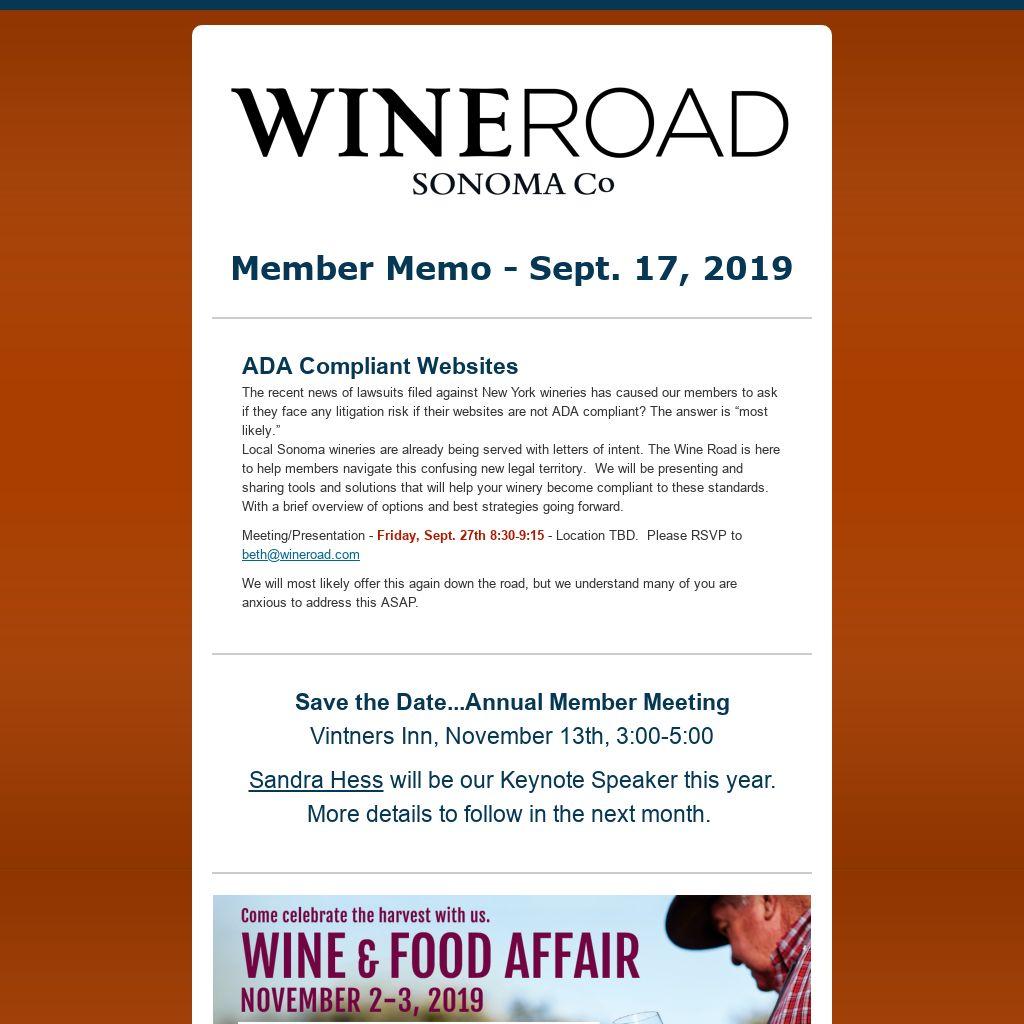 The recent news of lawsuits filed against New York wineries has caused our members to ask if they face any litigation risk if their websites are not ADA compliant? The answer is “most likely.”
