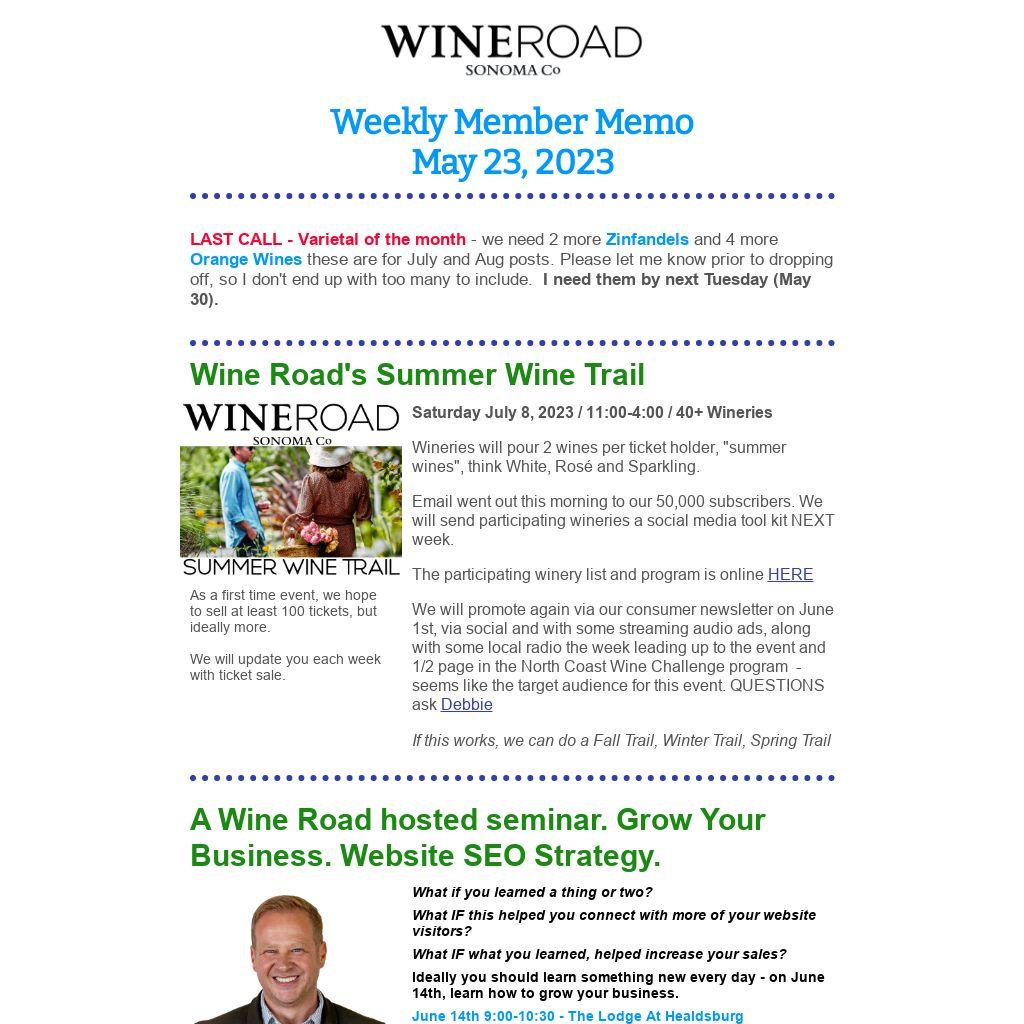 We support our members by providing a variety of content, which is designed for you to share - from social posts, the blog, the podcast and our varietal of the month. The more our nearly 200 members share these links the better for everyone.