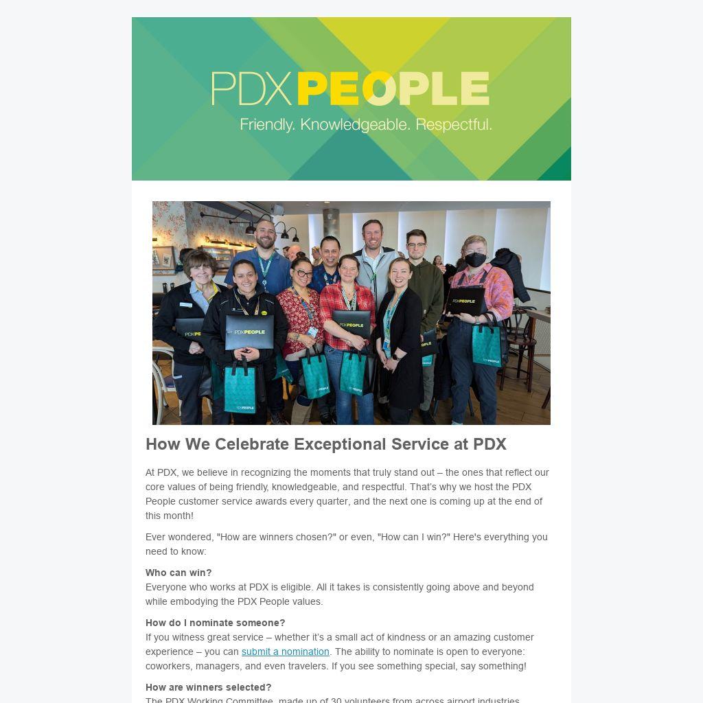 Is this the only opportunity to recognize PDX People? You provide amazing service every day, so of course we want to recognize those efforts throughout the year: