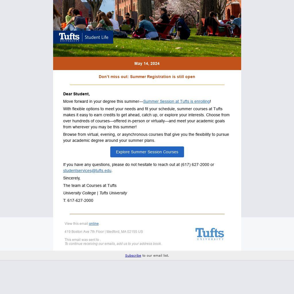 Move forward in your degree this summer—Summer Session at Tufts is enrolling!