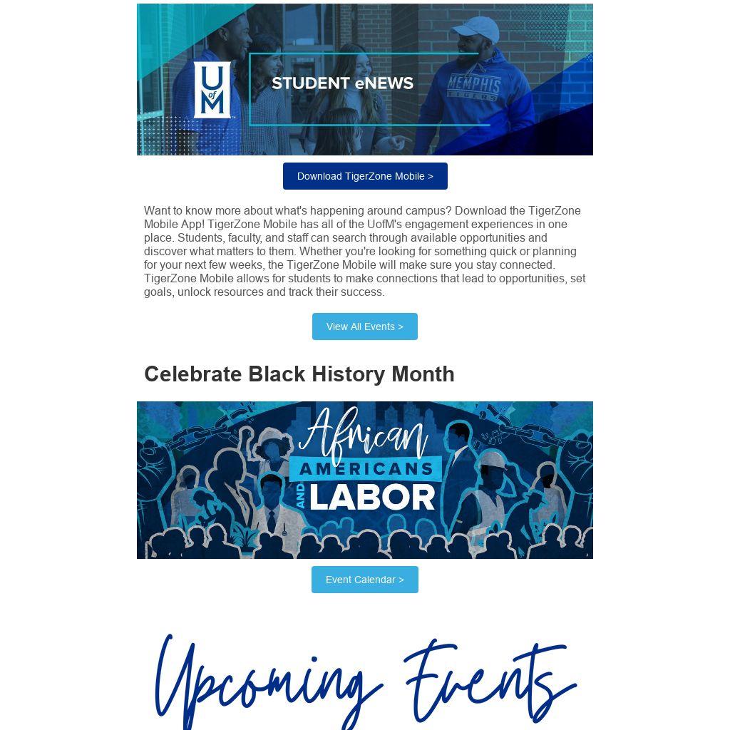 Want to know more about what's happening around campus? Download the TigerZone Mobile App! TigerZone Mobile has all of the UofM's engagement experiences in one place. Students, faculty, and staff can search through available opportunities and discover what matters to them. Whether you're looking for something quick or planning for your next few weeks, the TigerZone Mobile will make sure you stay connected. TigerZone Mobile allows for students to make connections that lead to opportunities, set goals, unlock resources and track their success.