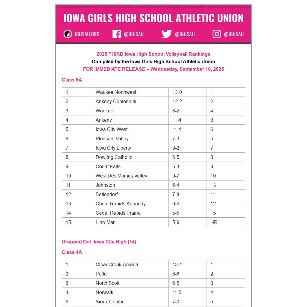 Dropped Out: Western Dubuque (11), Cedar Rapids Xavier (12)