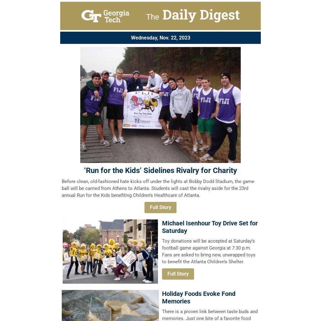 Before clean, old-fashioned hate kicks off under the lights at Bobby Dodd Stadium, the game ball will be carried from Athens to Atlanta. Students will cast the rivalry aside for the 23rd annual Run for the Kids benefiting Children’s Healthcare of Atlanta.