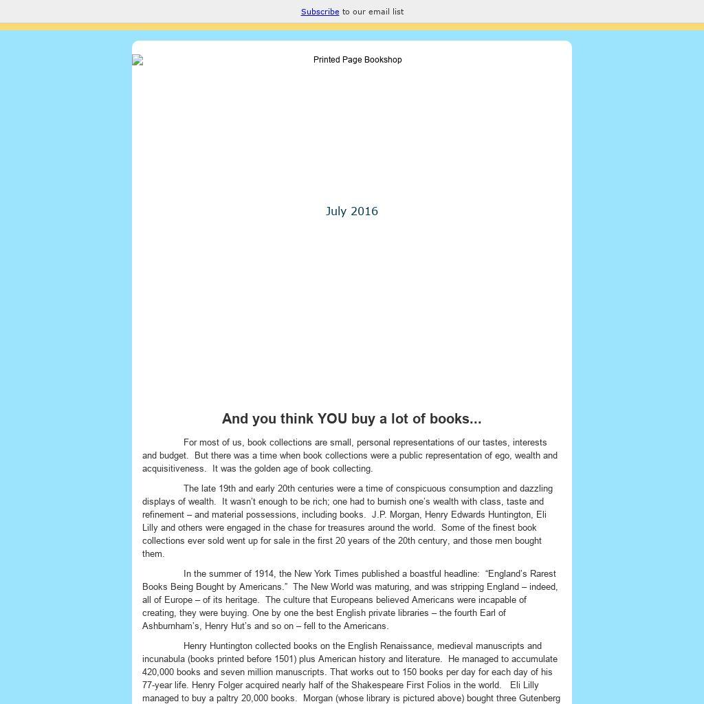 You probably aren’t another J.P. Morgan, and we certainly aren’t another A.S.W. Rosenbach (Lilly’s go-to bookseller), but the same principles apply. Let us know what you collect, and we’ll help you on your way to getting what you want. Maybe not Gutenbergs, though. First Folios are tough, too. But 150 books a day? We could do that.
