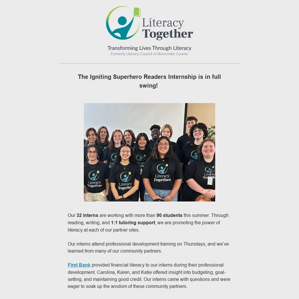 We had so much fun at the Asheville Dream Center Summer Bash! Thanks to our interns Abraham, Roxana, Nolan, and Claire for representing Literacy Together and Dolly Parton's Imagination Library!
