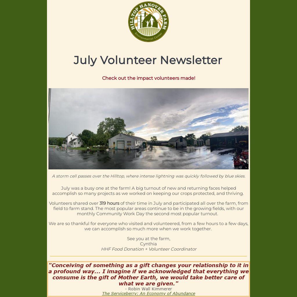 Volunteers shared over 319 hours of their time in July and participated all over the farm, from field to farm stand. The most popular areas continue to be in the growing fields, with our monthly Community Work Day the second most popular turnout.