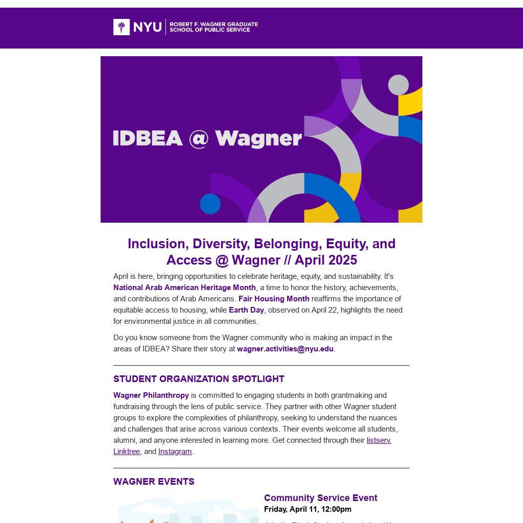 Inclusion, Diversity, Belonging, Equity, and Access @ Wagner // April 2025